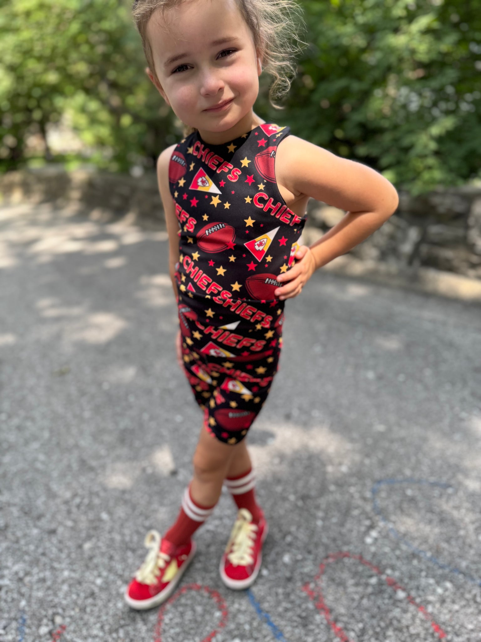 Bring on a new season baby! We're ready with a new, luxurious yoga fabric in this super cute print! This racerback tank that'll keep your kiddo on trend all season. Don't forget the biker shorts!