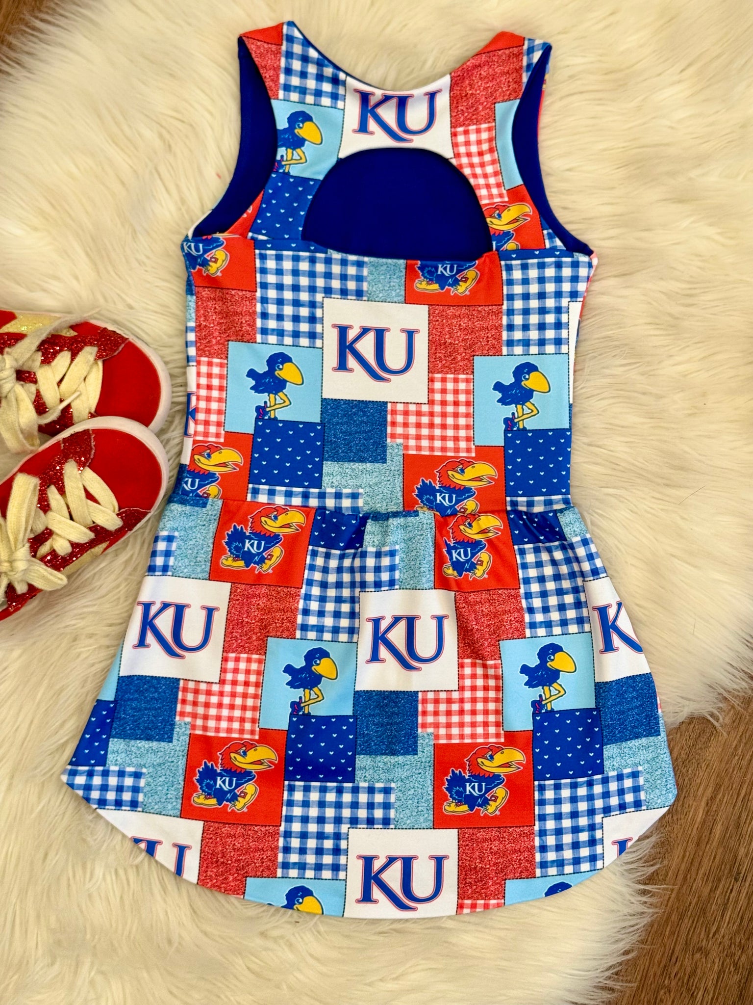 Rock Chalk this summer in the cutest River & Dallis original Jayhawk dress! The keyhole design on the back makes for a sweet and sporty look! Made to order!